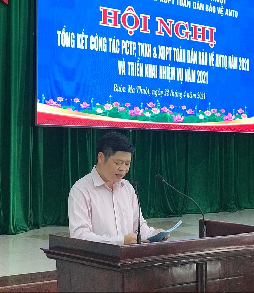 Ngày 22/4/2021, tại Hội trường UBND thành phố Buôn Ma Thuột, Ban chỉ đạo PCTP, TNXH và XDPT toàn dân bảo vệ ANTQ thành phố Buôn Ma Thuột đã tổ chức Hội nghị Tổng kết Công tác năm 2020 và triển khai nhiệm vụ năm 2021.