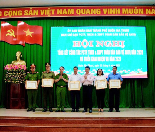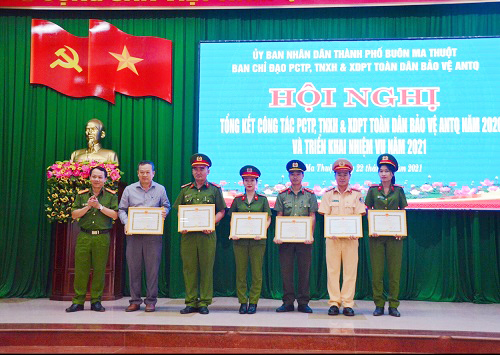 Ban Chỉ đạo thành phố tặng giấy khen cho các tập thể, cá nhân có thành tích xuất sắc trong công tác PCTP, TNXH và XDPT toàn dân bảo vệ ANTQ năm 2020