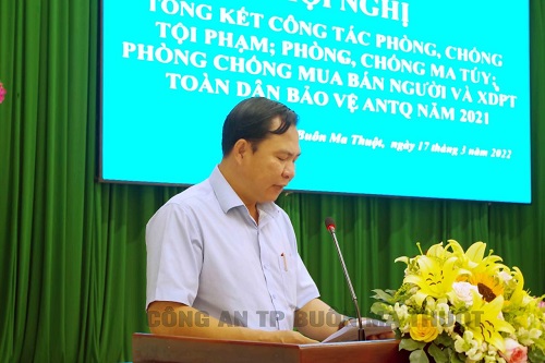 Đ/c Trung tá Kiều Mạnh Hùng - Phó trưởng Công an thành phố Buôn Ma Thuột; Phó trưởng ban Chỉ đạo, thông qua báo cáo công tác năm 2021 và phương hướng, nhiệm vụ năm 2022 của Ban Chỉ đạo