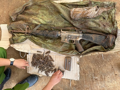 Một số hình ảnh lực lượng Công an bắt 3 đối tượng cùng súng, đạn và các tang vật chứng liên quan.