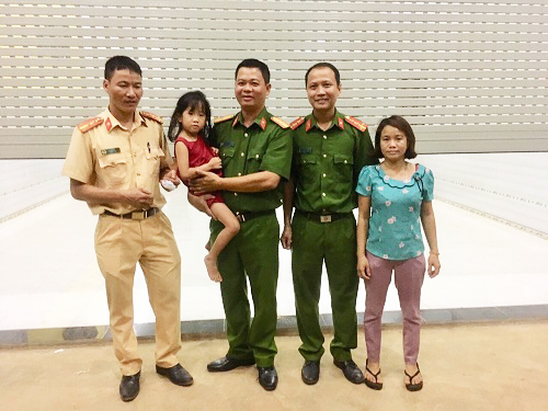 Cán bộ, chiến sĩ tổ công tác của Công an huyện Ea Súp cùng cháu bé được giải cứu và gia đình