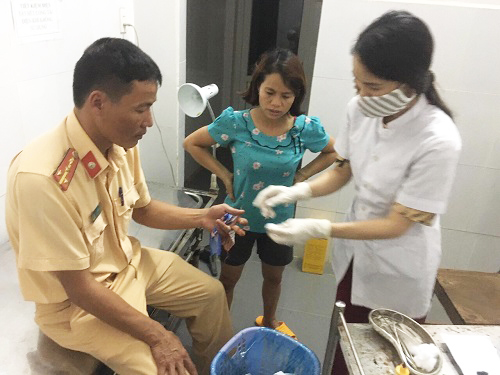 Trong lúc cứu cháu bé, Đại úy Lê Công Dân đã bị cửa cuốn kẹp dập 01 ngón tay