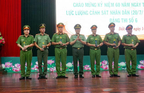 Tại Lễ bế mạc Bảng 6 của Hội thi, với thành tích đứng đầu 2 nội dung thi duyệt đội ngũ và võ thuật CAND, đứng Nhì nội dung thi bắn súng, Công an tỉnh Đắk Lắk đã được Ban tổ chức trao tặng Giải Nhất toàn đoàn. Giải Nhì toàn đoàn được trao cho Công an tỉnh Gia Lai. Giải Ba toàn đoàn thuộc về Công an tỉnh Lâm Đồng và Công an thành phố Hồ Chí Minh. Giải khuyến khích toàn đoàn được trao cho Công an tỉnh Bình Phước, Đắk Nông và Trường Cao đẳng Cảnh sát nhân dân II. Ngoài ra, Ban tổ chức còn trao các giải Nhất, Nhì, Ba cho những cá nhân thi các nội dung bắn súng. Sau vòng loại Bảng 6, các đội đạt Giải Nhất, Nhì, Ba toàn đoàn sẽ được tham gia thi Vòng chung kết Hội thi điều lệnh, bắn súng, võ thuật kỷ niệm 60 năm Ngày truyền thống lực lượng Cảnh sát nhân dân phía Nam.