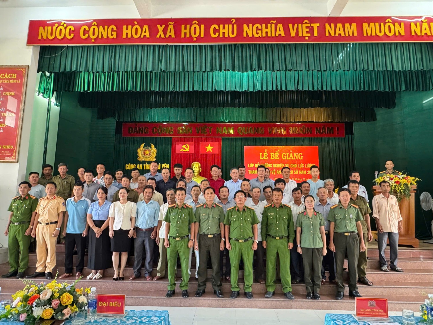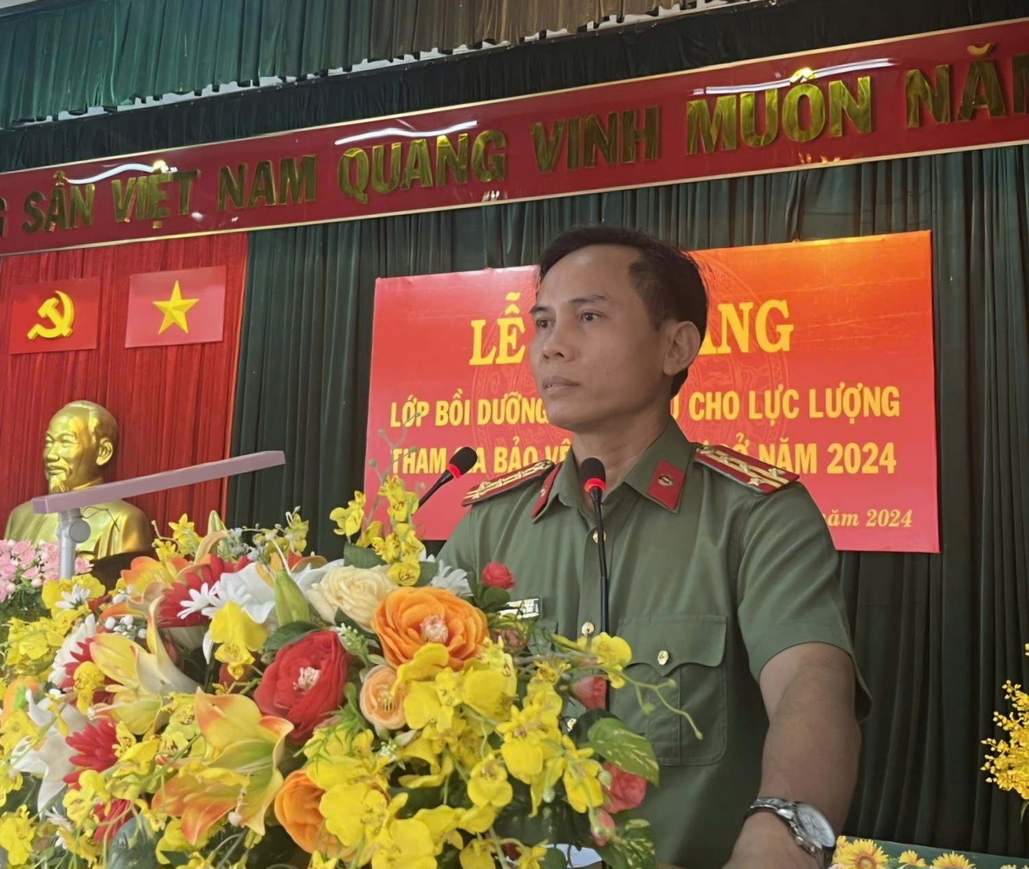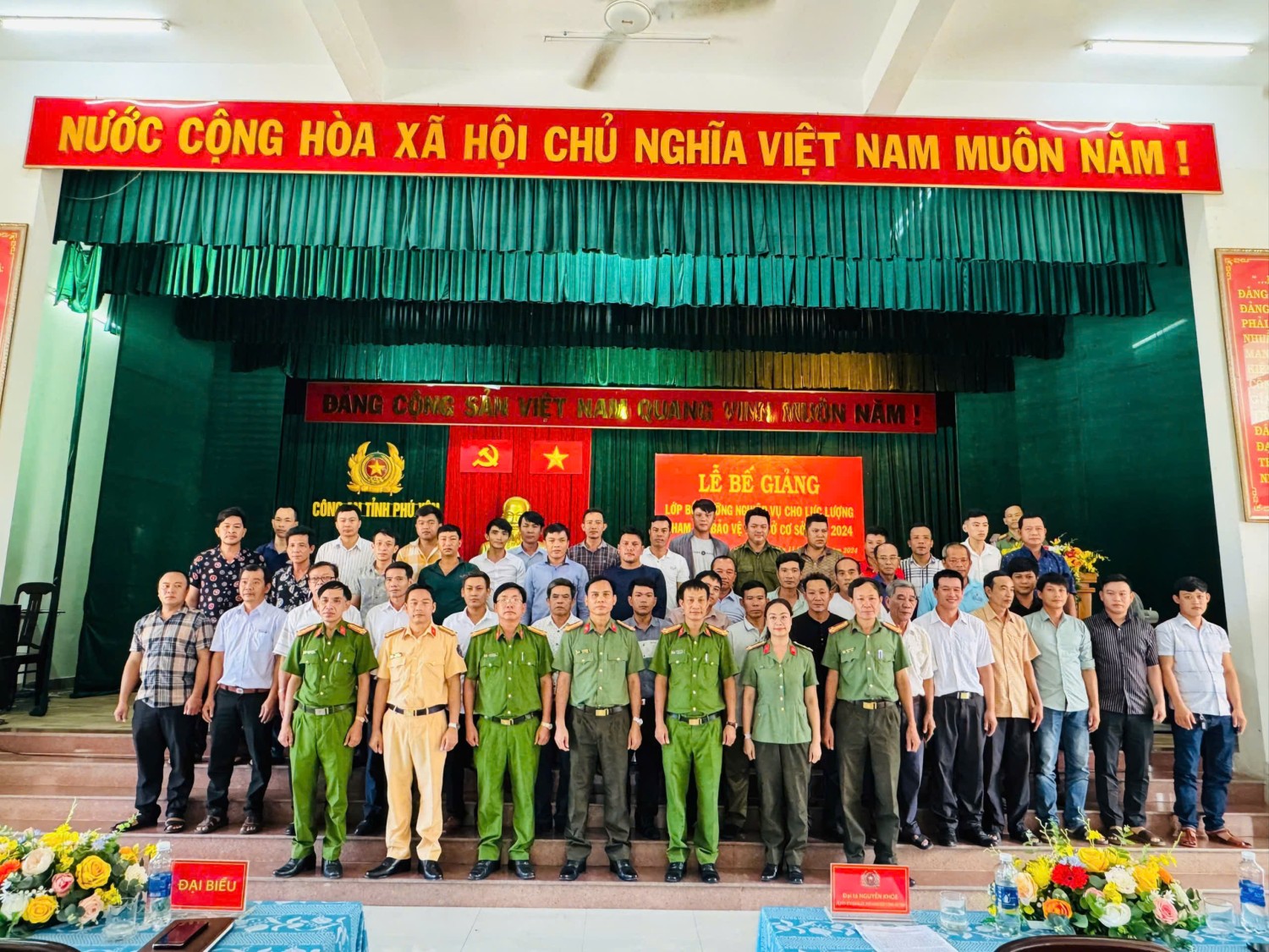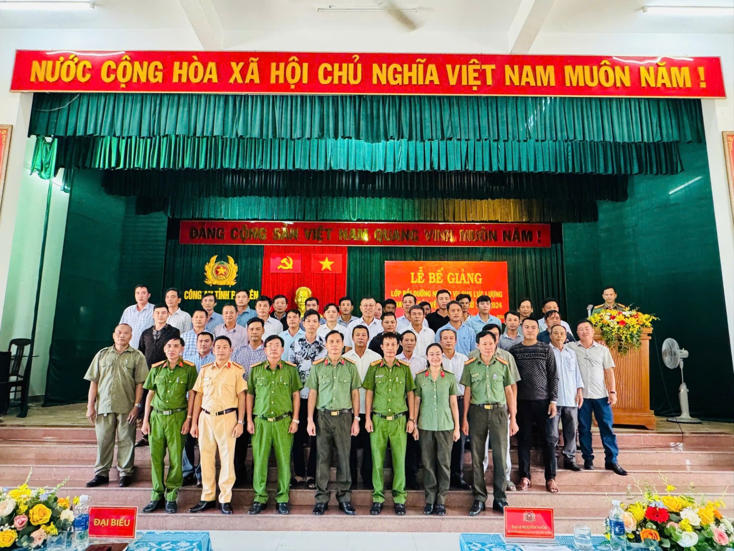 Dự phát biểu chỉ đạo và trao Giấy chứng nhận hoàn thành chương trình bồi dưỡng nghiệp vụ cho học viên lớp bồi dưỡng có đồng chí Đại tá Nguyễn Khỏe, Ủy viên Ban Thường vụ Đảng ủy, Phó Giám đốc Công an tỉnh. Cùng dự có các đồng chí là lãnh đạo Công an các đơn vị: Phòng Tham mưu; Phòng Cảnh sát Quản lý hành chính về trật tự xã hội; Phòng Cảnh sát Phòng cháy, chữa cháy và Cứu nạn, cứu hộ; Phòng Cảnh sát giao thông; Phòng Cảnh sát Cơ động và đặc biệt là sự có mặt đông đủ của 194 đồng chí là lực lượng tham gia bảo vệ an ninh, trật tự ở cơ sở tham gia lớp bồi dưỡng nghiệp vụ đợt 4 năm 2024.