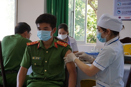 Bệnh viện Công an tỉnh Đắk Lắk vừa tổ chức tiêm vaccine phòng dịch Covid-19 cho những cán bộ, chiến sỹ ở các đơn vị tuyến đầu tham gia phòng chống dịch và thường xuyên tiếp xúc với công dân.