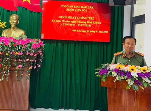 Thực hiện Kế hoạch số 28/KH-CAT-PX01 ngày 15/7/2025 của Công an tỉnh về Tổ chức gặp mặt, tặng quà thương binh, thân nhân liệt sĩ, người có công với cách mạng trong Công an nhân dân nhân kỷ niệm 78 năm Ngày Thương binh - Liệt sĩ (27/7/1947 - 27/7/2025). Chiều ngày 25/7/2025, Bệnh viện số 1 Công an tỉnh đã trang trọng tổ chức sinh hoạt chính trị, gặp mặt tri ân nhân dịp kỷ niệm 78 năm Ngày Thương binh - Liệt sĩ (27/7/1947 - 27/7/2025).
