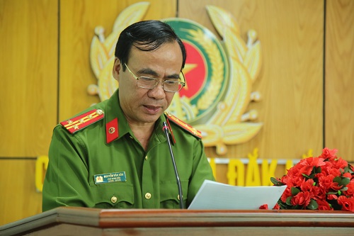 Đồng chí Đại tá Nguyễn Văn Bôn – Phó Giám đốc Công an tỉnh báo cáo về vụ án