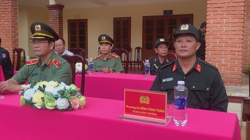 Tại đây, đồng chí Nguyễn Đình Trung - Ủy viên Trung ương Đảng, Bí thư Tỉnh ủy và đồng chí Thiếu tướng Lê Vinh Quy - Ủy viên Ban Thường vụ Tỉnh ủy, Giám đốc Công an tỉnh đã thăm hỏi, động viên và gửi lời cảm ơn về những nỗ lực cố gắng của cán bộ, chiến sĩ lực lượng Cảnh sát cơ động trong những ngày qua, đồng thời đề nghị trong thời gian tới, Bộ Tư lệnh Cảnh sát cơ động tiếp tục phối hợp, giúp đỡ cấp ủy, chính quyền và lực lượng Công an tỉnh tích cực truy bắt hết những đối tượng còn lại của vụ án, làm tốt công tác tuyên truyền để ổn định tình hình, giữ vững an ninh chính trị, trật tự an toàn xã hội trên địa bàn.