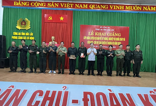 Ngày 15/6/2023, đồng chí Nguyễn Đình Trung - Ủy viên Trung ương Đảng, Bí thư Tỉnh ủy và đồng chí Thiếu tướng Lê Vinh Quy - Ủy viên Ban Thường vụ Tỉnh ủy, Giám đốc Công an tỉnh đã đến thăm hỏi, tặng quà động viên cán bộ, chiến sĩ của Bộ Tư lệnh Cảnh sát cơ động - Bộ Công an và cán bộ, chiến sĩ của Phòng Cảnh sát cơ động Công an tỉnh Đắk Lắk đang tham gia thực hiện nhiệm vụ bảo đảm an ninh, trật tự tại địa bàn huyện Cư Kuin, tỉnh Đắk Lắk.