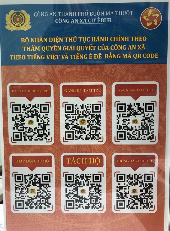 Bộ nhận diện thủ tục hành chính theo thẩm quyền giải quyết của Công an xã theo Tiếng Việt và Tiếng Ê Đê bằng mã QR Code