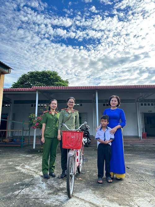 Cũng trong dịp này, Đoàn cơ sở Công an huyện đã trao tặng 01 xe đạp trị giá 1.500.000 đồng cho em Y Mun Buôn (sinh năm 2017) trú tại buôn Diêo, xã Bông Krang, là học sinh trường Tiểu học Trần Phú, mặc dù 1 bên mắt đã bị hư hoàn toàn, bên còn lại thị lực đang yếu dần, bố mẹ li hôn, em phải sống cùng họ hàng, nhưng lại có tinh thần vươn lên trong học tập, đạt được thành tích cao.