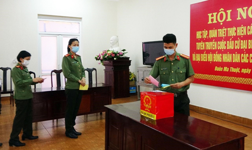 Cán bộ, chiến sỹ CATP Buôn Ma Thuột tham gia bỏ phiếu