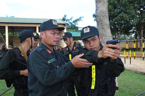 Hình ảnh 02 đồng chí Đại úy Nguyễn Thế Cẩn (trái) và Trung sỹ Hứa Xuân Hoàng (phải) thuộc Phòng Cảnh sát Cơ động tỉnh Đắk Lắk