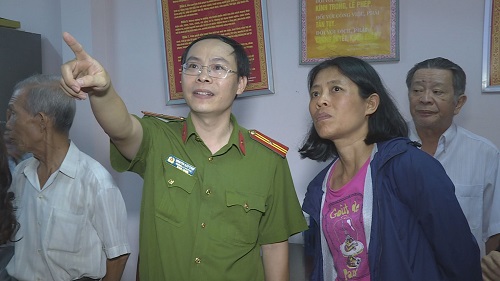 Cán bộ Công an phường đang hướng dẫn cho Nhân dân thấy rõ hiệu quả giám sát của camera an ninh