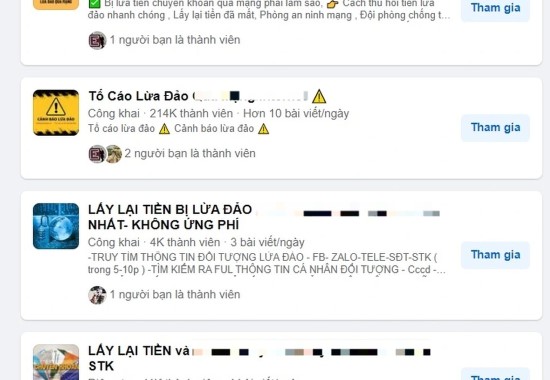 Những nhóm "Lấy lại tiền lừa đảo" tràn lan trên mạng xã hội (Hình ảnh minh họa)
