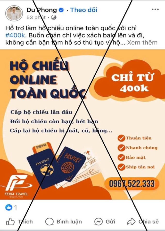 Thực trạng lộ lọt dữ liệu cá nhân ở Việt Nam và thế giới rất đáng báo động trong khi hành lang pháp lý chưa hoàn thiện, ý thức của người dân để bảo vệ thông tin chưa cao. Lợi dụng việc Bộ Công an triển khai tiếp nhận hồ sơ cấp hộ chiếu phổ thông trực tuyến trên Cổng dịch vụ công Quốc gia và Cổng dịch vụ công Bộ Công an, trên các trang mạng xã hội Facebook, Zalo….. xuất hiện nhiều tài khoản cá nhân, các hội, nhóm đăng tải, quảng cáo “làm hộ chiếu online” với những lời chào hấp dẫn như: không cần phải đi xa, không cần xếp hàng, không chờ đợi, hộ chiếu gửi đến tận tay người dân… để nộp hồ sơ thay người có nhu cầu và trục lợi với chi phí cao gấp nhiều lần lệ phí do Nhà nước quy định.