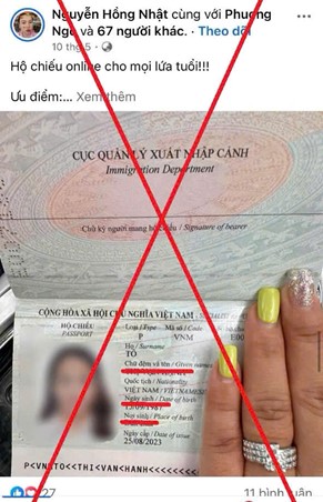 Nhiều “dịch vụ” còn sử dụng hình ảnh hộ chiếu của công dân đăng tải lên trang cá nhân nhằm tạo sự tin tưởng cho “khách hàng. Từ đó, tiềm ẩn nguy cơ bị đánh cắp thông tin cá nhân (ảnh chân dung, số CCCD, số điện thoại, email…) để thực hiện các hành vi vi phạm pháp luật trên không gian mạng như: mở tài khoản ngân hàng, vay tiền, đánh cắp tài khoản Facebook, VneID… Sau đó dùng tài khoản này để lừa đảo vay tiền của người thân, bạn bè, chiếm đoạt toàn bộ thông tin cư trú cá nhân.