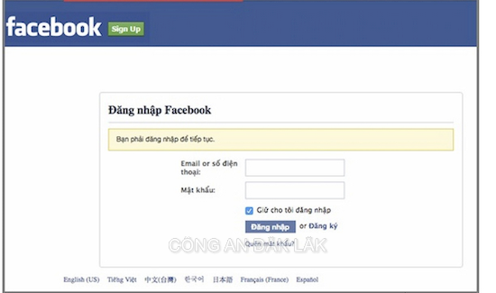 Hình ảnh yêu cầu đăng nhập tài khoản Facebook từ đường link