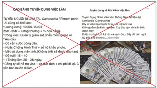 Thời gian qua, lợi dụng nhu cầu tìm việc của người lao động tăng cao, trên mạng xã hội xuất hiện nhiều thông tin tuyển dụng gắn mác xuất khẩu lao động sang Campuchia với chiêu bài "việc nhẹ lương cao". Điển hình như, hoạt động bóc lột sức lao động, cưỡng đoạt tài sản thậm chí bị đe dọa đến tính mạng và buộc gia đình nạn nhân phải nộp số tiền chuộc rất lớn mới được thả về nước. Vì nhẹ dạ cả tin nên vẫn có nhiều người “sập bẫy”.