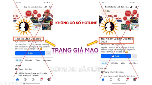 Phương thức, thủ đoạn chung của các trang mạng xã hội giả mạo là đổi tên, mua lại từ các trang cũ có sẵn lượt theo dõi cao hoặc lập mới hoàn toàn theo tên gọi của các đơn vị như: “Trại hè lính cứu hỏa”, “Trại hè kỹ năng - Trại hè Công an nhân dân”…