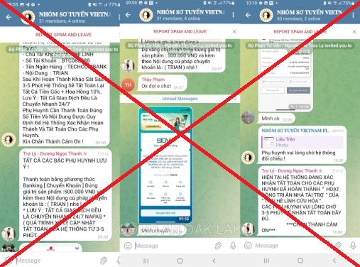 Các đối tượng lấy các lý do khác nhau yêu cầu chị chuyển tiền tham gia “khảo sát 3” nhằm lấy lại số tiền chưa được hoàn, tuy nhiên khi chuyển khoản xong thì chị N. bị xóa khỏi nhóm khảo sát.