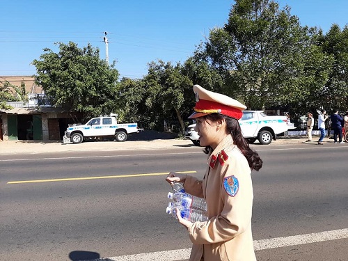 Thực hiện đợt cao điểm đảm bảo trật tự, an toàn giao thông trước, trong dịp Tết Nguyên Đán Canh Tý năm 2020, cùng với tăng cường công tác TTKS, Phòng Cảnh sát giao thông Công an tỉnh Đắk Lắk đã tổ chức hoạt động phát nước uống miễn phí cho người tham gia giao thông trên đường Hồ Chí Minh thuộc địa bàn xã Ea Đrơng, huyện Cư M’gar và địa bàn xã Hòa Phú thuộc thành phố Buôn Ma Thuột. Đồng thời, kết hợp với tuyên truyền, vận động, nhắc nhở người dân khi tham gia giao thông phải chấp hành nghiêm các quy định của pháp luật, đi đúng phần đường, làn đường, tốc độ quy định, chú ý quan sát để đảm bảo an toàn cho bản thân cũng như những người tham gia giao thông. Hoạt động trên nhằm giúp cho người tham gia giao thông bớt đi cơn khát, phục hồi sức khỏe để tiếp tục hành trình bảo đảm an toàn, đồng thời góp phần xây dựng hình ảnh người chiến sĩ Cảnh sát giao thông thân thiện, nhân văn, vì Nhân dân phục vụ.