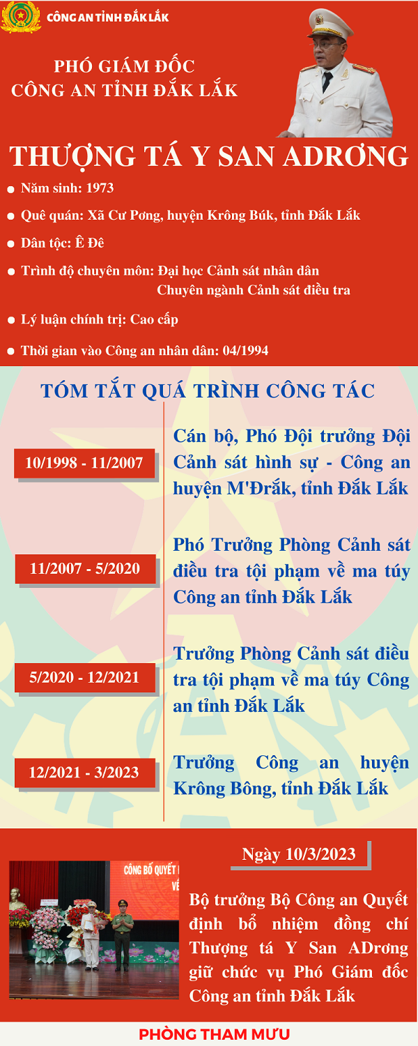 Bộ trưởng Bộ Công an ký Quyết định điều động, bổ nhiệm Thượng tá Y San ADrơng, Trưởng Công an huyện Krông Bông đến nhận công tác và giữ chức vụ Phó Giám đốc Công an tỉnh Đắk Lắk.