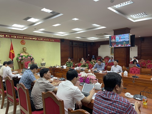 Đồng chí Thiếu tướng Lê Vinh Quy, Ủy viên Ban Thường vụ Tỉnh ủy, Giám đốc Công an tỉnh chủ trì Hội nghị tại điểm cầu Đắk Lắk