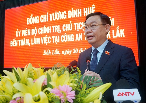 Tại buổi làm việc, Chủ tịch Quốc hội Vương Đình Huệ đã phát biểu ghi nhận, biểu dương và đánh giá cao những thành tích mà lực lượng Công an tỉnh Đắk Lắk đạt được trong 6 tháng đầu năm 2021 trên tất cả các lĩnh vực từ xây dựng Đảng bộ, XDLL, bảo đảm ANCT, TTATXH đến xây dựng phong trào toàn dân bảo vệ ANTQ và bố trí Công an chính quy đảm nhiệm các chức danh Công an xã. Đồng thời, Chủ tịch Quốc hội cũng chỉ đạo lực lượng Công an tỉnh Đắk Lắk trong thời gian tới tiếp tục kế thừa, phát huy truyền thống đơn vị Anh hùng lực lượng vũ trang nhân dân, phát huy những kinh nghiệm, thành quả đã đạt được, không ngừng thi đua, sáng tạo để hoàn thành xuất sắc những nhiệm vụ được giao, trở thành điểm sáng trong lực lượng Công an toàn quốc và luôn xứng đáng với niềm tin yêu của Đảng, Nhà nước và Nhân dân./.