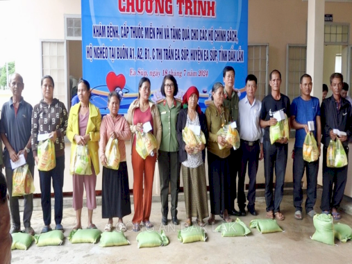 Ngày 18/7/2024 tại Trạm y tế thị trấn Ea Súp, Công an huyện Ea Súp phối hợp cùng với Công đoàn Bệnh viện 199 Bộ Công an, Công đoàn Công an tỉnh Đắk Lắk tổ chức Chương trình khám bệnh, cấp phát thuốc miễn phí và tặng quà nhân kỷ niệm 95 năm ngày thành lập Công đoàn Việt Nam (28/7/1929-28/7/2024) tại Buôn A1, A2, B1 và Buôn C, thị trấn Ea Súp, huyện Ea Súp, tỉnh Đắk Lắk.