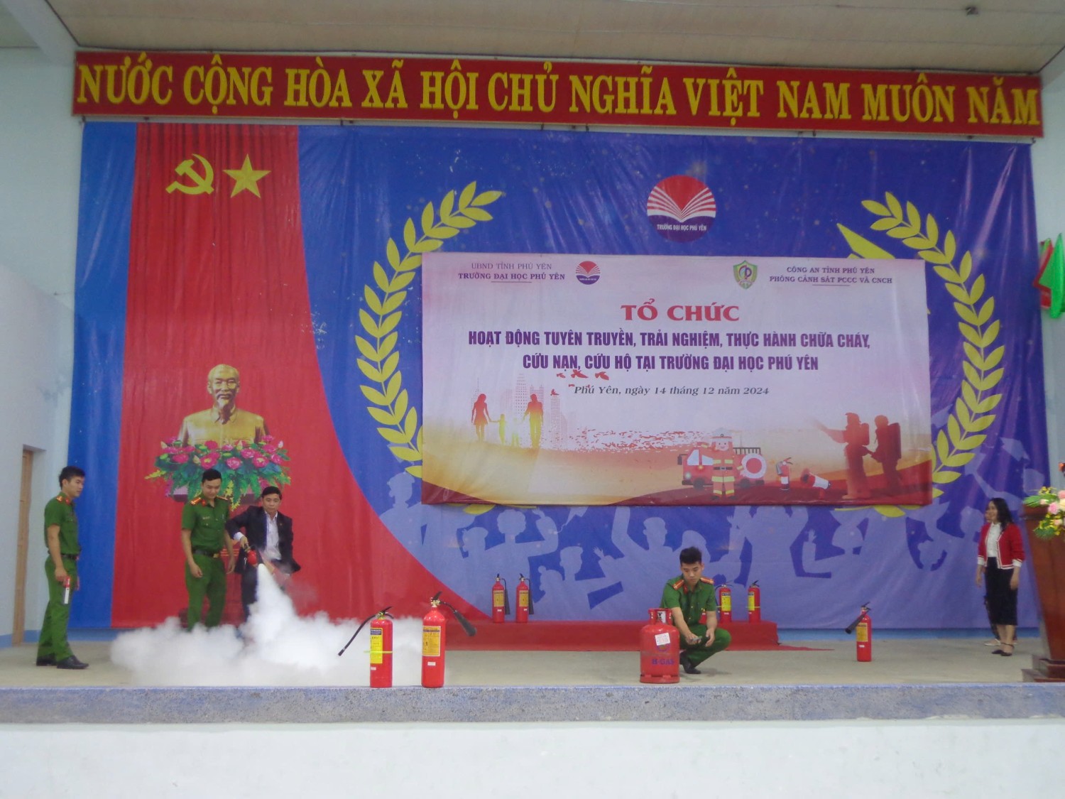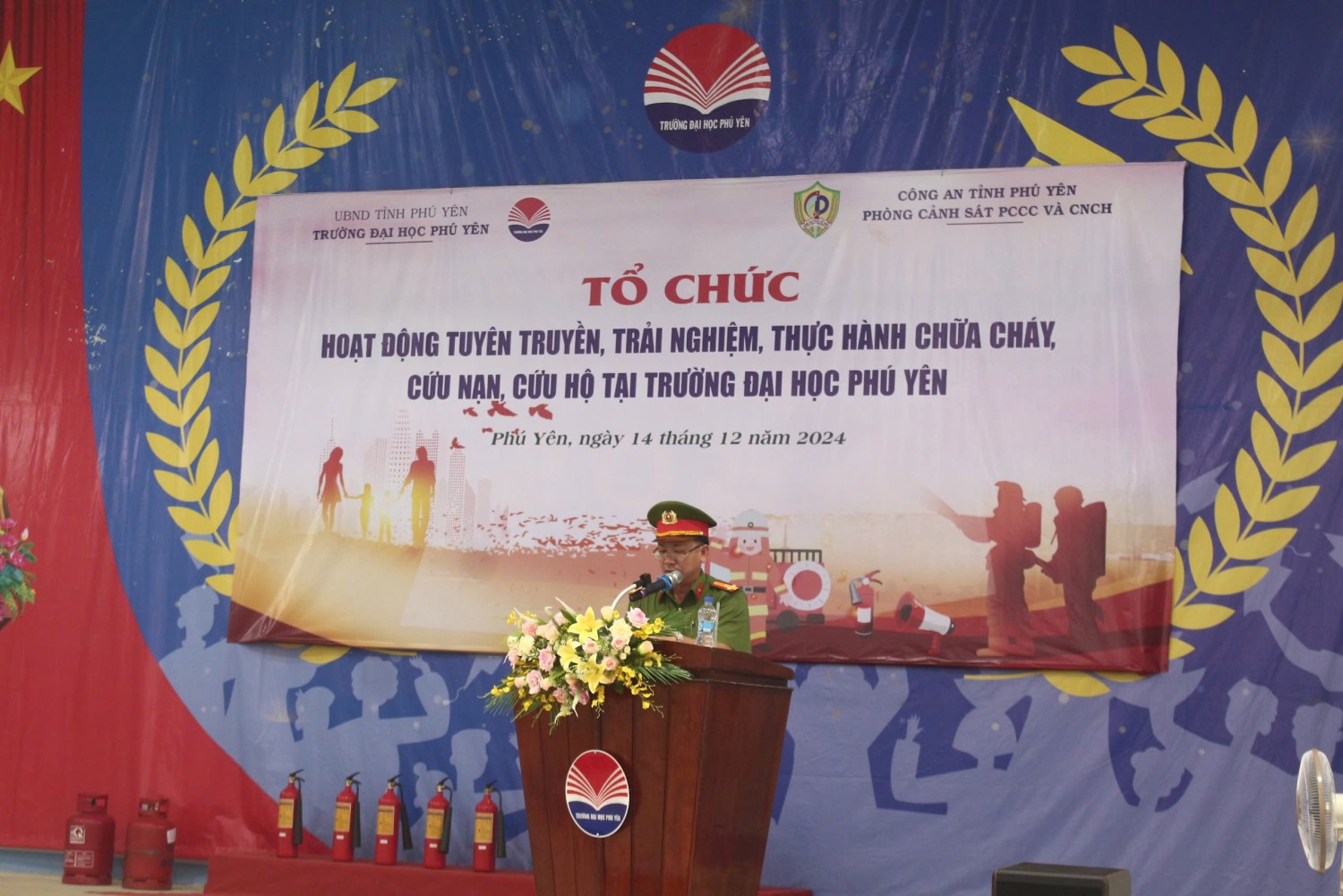Sáng ngày 14/12/2024 Phòng Cảnh sát PCCC và CNCH, Công an tỉnh Phú Yên phối hợp với Trường Đại học Phú Yên tổ chức hoạt động tuyên truyền, trải nghiệm, thực hành chữa cháy và cứu nạn, cứu hộ.