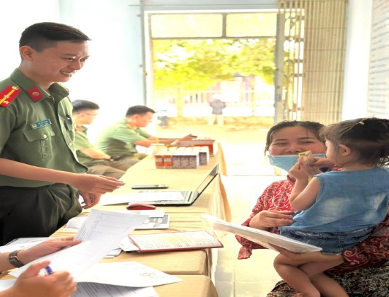 Cán bộ Cơ quan UBKT Đảng ủy Công an tỉnh phối hợp cán bộ Quỹ bảo trợ trẻ em hướng dẫn làm hồ sơ