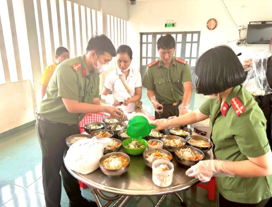 Đoàn viên, hội viên Phòng Thanh tra, Cơ quan UBKT Đảng ủy Công an tỉnh đang chuẩn bị các suất ăn miễn phí