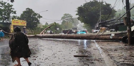 Trận mưa lớn trên diện rộng xảy ra ngày 13/5/2025 làm đổ cây cổ thụ, gây ách tắc giao thông tại tuyến đường thuộc tỉnh lộ 8 (đoạn đường qua thị trấn Ea Pốk, huyện Cư M’Gar, tỉnh Đắk Lắk).