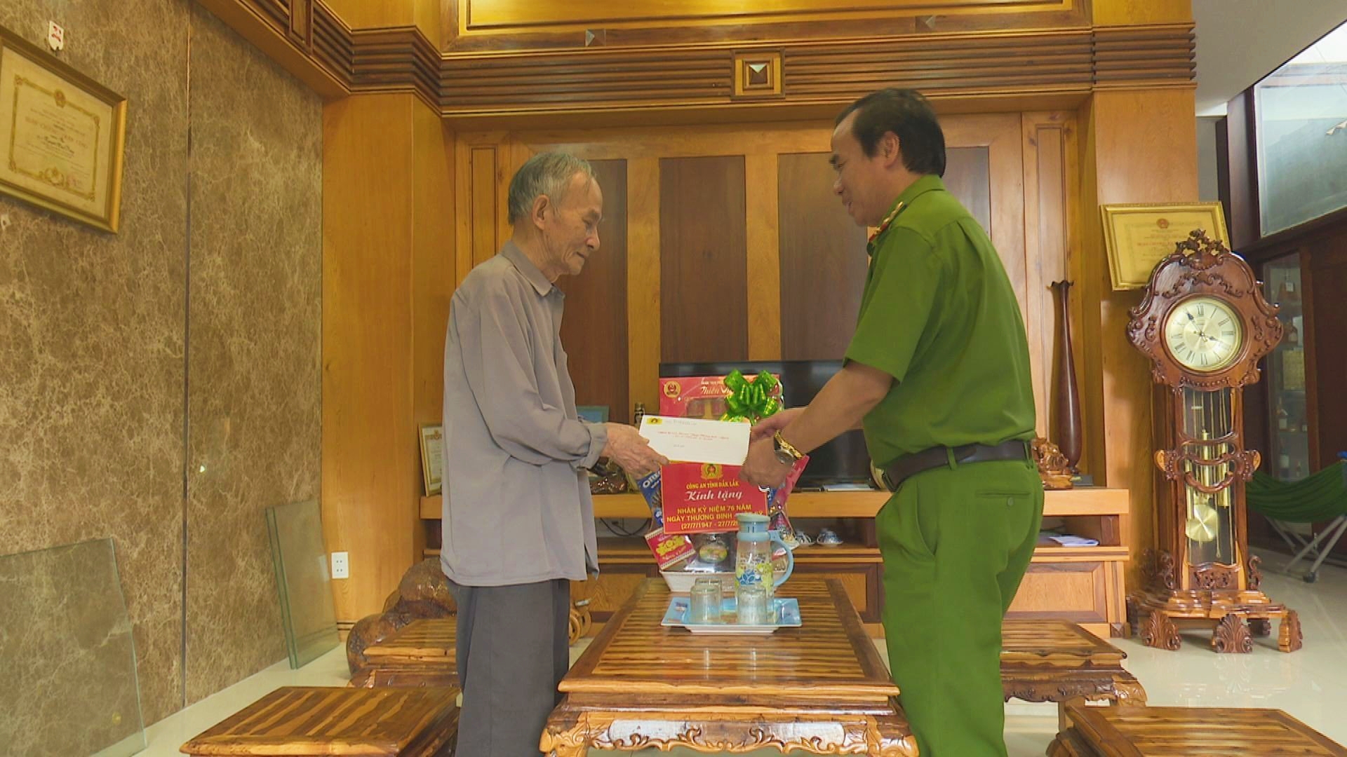 Công an tỉnh Đắk Lắk vừa tổ chức các đoàn công tác đến thăm hỏi, tặng quà cho các thương binh, thân nhân liệt sỹ, gia đình người có công cách mạng trong lực lượng Công an Đắk Lắk nhân dịp 76 năm Ngày Thương binh, Liệt sỹ (27/7/1947 – 27/7/2023).