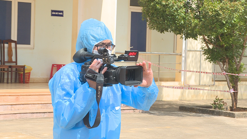 Các phóng viên truyền hình của Công an tỉnh Đắk Lắk tác nghiệp tại những khu cách ly trong tỉnh, kịp thời có nhiều tin, phóng sự phản ánh