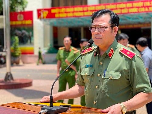 Đồng chí Thiếu tướng Lê Vinh Quy - Giám đốc Công an tỉnh phát biểu chỉ đạo, động viên CBCS tích cực tập luyện