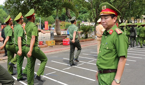 Đồng chí Đại tá Nguyễn Văn Hội - Phó Giám đốc Công an tỉnh đôn đốc CBCS tham gia tập luyện