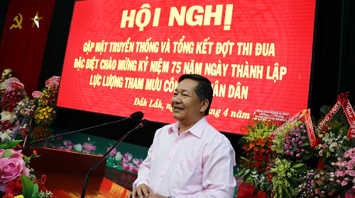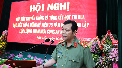 Phát biểu chỉ đạo Hội nghị, đồng chí Đại tá Lê Vinh Quy – Giám đốc Công an tỉnh đã ghi nhận, đánh giá cao, biểu dương và nhiệt liệt chúc mừng những thành tích, chiến công thầm lặng nhưng hết sức quan trọng mà lực lượng Tham mưu Công an tỉnh đã đạt được trong suốt 75 năm qua; đồng thời, bày tỏ lòng biết ơn và tri ân sâu sắc đối với các đồng chí lãnh đạo, cán bộ, chiến sĩ lực lượng Tham mưu qua các thời kỳ và mong muốn rằng thời gian tới, lực lượng Tham mưu Công an tỉnh sẽ tiếp tục nhận được sự quan tâm, đóng góp, động viên, chia sẻ, trao đổi kinh nghiệm của các đồng chí nguyên lãnh đạo, chỉ huy, cán bộ từng công tác trong lực lượng Tham mưu Công an Đắk Lắk, giúp lực lượng Tham mưu Công an tỉnh hoàn thành xuất sắc mọi nhiệm vụ được giao.