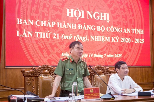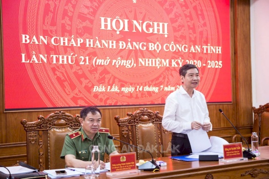 Ngày 14/7/2025, Công an tỉnh Đắk Lắk vừa tổ chức Hội nghị Ban chấp hành Đảng bộ Công an tỉnh lần thứ 21, nhiệm kỳ 2020 - 2025. Đồng chí Thiếu tướng Phan Thanh Tám, Bí thư Đảng ủy, Giám đốc Công an tỉnh chủ trì Hội nghị. Tham dự hội nghị có đồng chí Tạ Anh Tuấn - Phó Bí thư Tỉnh uỷ, Chủ tịch UBND tỉnh Đắk Lắk cùng đại diện Văn phòng Tỉnh ủy, các đồng chí Ủy viên Ban Thường vụ Đảng ủy, Lãnh đạo Công an tỉnh, các đồng chí trong Ban Chấp hành Đảng bộ Công an tỉnh, Bí thư, Phó Bí thư các tổ chức cơ sở đảng trực thuộc và Trưởng các Ban Thanh niên, Phụ nữ, Công đoàn Công an tỉnh.