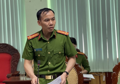 Thượng tá Trần Quang Hiếu - Phó Giám đốc Công an tỉnh phát biểu chỉ đạo tại hội nghị.