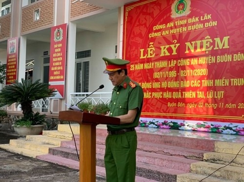 Cũng trong dịp này, Công an huyện Buôn Đôn cũng đã phát động hưởng ứng cùng đồng bào, cán bộ, chiến sĩ cả nước quyên góp ủng hộ, giúp đỡ đồng bào miền Trung khắc phục hậu quả do thiên tai, mưa lũ, thể hiện tinh thần tương thân, tương ái, sẵn sàng giúp đỡ Nhân dân trong lúc khó khăn, hoạn nạn./.