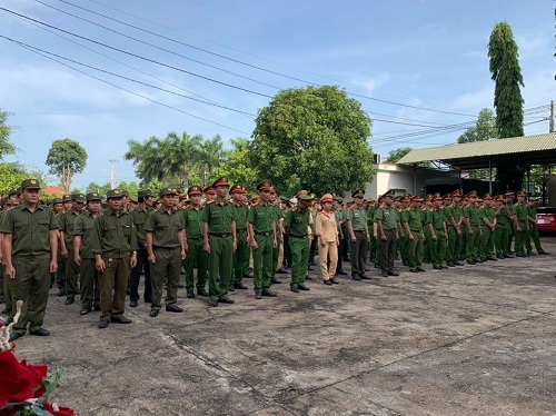 Cán bộ, chiến sĩ Công an huyện cùng Công an viên các thôn, buôn tại Lễ kỷ niệm