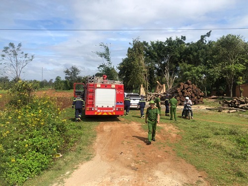 Công an huyện Cư Kuin điều động cán bộ, chiến sĩ Đội Cảnh sát PCCC và CNCH và các lực lượng liên quan phối hợp Đội PC và CNCH số 5 thuộc Phòng Cảnh sát PCCC và CNCH lập tức đến hiện trường