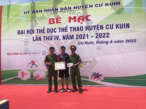 Từ đầu năm 2022 cho đến nay, Công an huyện Cư Kuin đã tích cực tham gia các giải thể dục, thể thao do các cấp tổ chức. Với thế mạnh ở các môn thể thao như: Bóng chuyền, bóng đá, cầu lông, chạy Việt dã … Công an huyện Cư Kuin đã thành lập các đội tuyển tham gia giải đấu, kết quả: đạt giải ba môn bóng chuyền nam Khối thi đua số 1 Công an tỉnh; 02 giải nhất, 01 giải ba môn Cầu lông, 01 giải ba môn bóng chuyền nam, 01 giải ba bóng chuyền nữ; 01 giải ba và 01 giải khuyến khích chạy Việt dã trong trong Đại hội thể dục, thể thao huyện Cư Kuin lần thứ IV năm 2022. Qua những giải đấu nói trên, Công an huyện đã lựa chọn nhân tố xuất sắc báo cáo Công an tỉnh để tập luyện và tham gia các giải, Hội thao do Bộ Công an tổ chức.