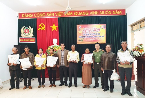 Nhân dịp chuẩn bị đón Tết cổ truyền của dân tộc, sáng ngày 17/01/2020 Đảng ủy, lãnh đạo Công an huyện Cư Kuin đã tổ chức buổi gặp mặt, thăm hỏi, tặng quà cho 30 quần chúng tiêu biểu trong công tác đảm bảo ANTT tại địa bàn cơ sở. Tại buổi gặp mặt, đồng chí Đại tá Nguyễn Văn Sỹ - Bí thư Đảng ủy, Trưởng Công an huyện đã thông báo tóm tắt tình hình, kết quả công tác đảm bảo ANTT trên địa bàn huyện nói chung và biểu dương những kết quả đóng góp của các quần chúng tiêu biểu tham gia công tác bảo đảm ANTT tại địa bàn cơ sở.