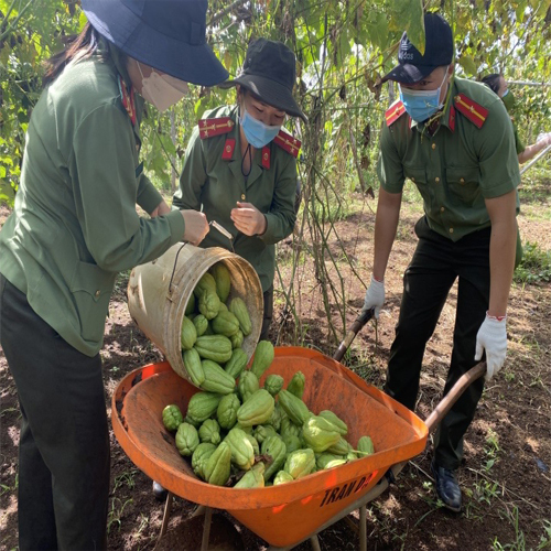 Ngày cuối tuần, Cán bộ chiến sĩ Công an huyện tổ chức thu, hái nông sản