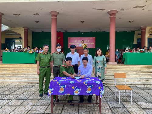 Cũng tại buổi Lễ, trước sự chứng kiến của lãnh đạo Ủy ban nhân dân huyện, Công an huyện Cư M’gar, đại diện Ban Giám hiệu nhà trường và Công an thị trấn Quảng Phú đã ký kết Quy chế phối hợp về công tác đảm bảo an ninh chính trị, trật tự an toàn xã hội trong trường THPT Cư M’gar./.