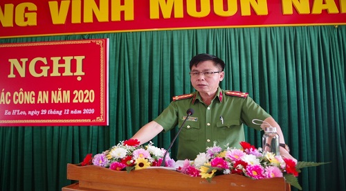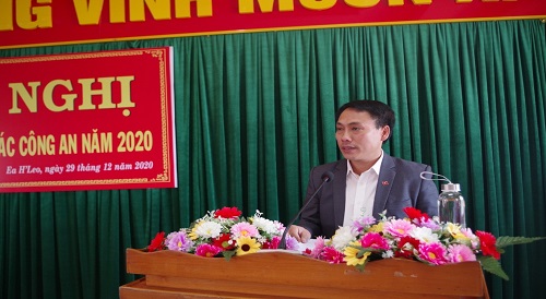 Sáng ngày 29/12/2020, Công an huyện Ea H’leo tổ chức Hội nghị tổng kết công tác Công an năm 2020 và triển khai nhiệm vụ, phát động phong trào thi đua năm 2021. Tham dự và chỉ đạo Hội nghị có đồng chí Đại tá Nguyễn Văn Bình – Phó Giám đốc Công an tỉnh Đắk Lắk, đồng chí Nguyễn Ngọc Hoàng – Phó Bí thư thường trực Huyện uỷ Ea H’leo; tham dự Hội nghị có đại diện cấp uỷ, chính quyền 12 xã, thị trấn cùng các đồng chí lãnh đạo Công an huyện, chỉ huy các đội nghiệp vụ, Công an các xã, thị trấn và toàn thể cán bộ, chiến sĩ trong đơn vị.