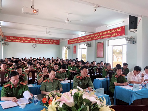Để thực hiện thắng lợi nhiệm vụ chính trị đặt ra trong 6 tháng cuối năm 2019, đồng chí Giám đốc Công an tỉnh yêu cầu tập thể Đảng ủy, lãnh đạo Công an huyện phải đề cao vai trò, trách nhiệm, gương mẫu, đi đầu trong thực hiện chức trách nhiệm vụ được giao. Chủ động nắm, phân tích, dự báo sát, đúng tình hình, tích cực tham mưu cho Huyện ủy, UBND huyện và phối hợp với các ban ngành, đoàn thể tham gia bảo đảm an ninh, trật tự trên địa bàn, đồng thời triển khai thực hiện hiệu quả các chương trình, kế hoạch, giải pháp giải quyết kịp thời các vụ việc phức tạp nổi lên ngay từ đầu và ngay tại cơ sở, không để bị động, bất ngờ trong mọi tình huống theo phương châm 4 tại chỗ “Chỉ huy tại chỗ, lực lượng tại chỗ, phương tiện tại chỗ và hậu cần tại chỗ”. Bên cạnh đó, cần tăng cường công tác giáo dục chính trị tư tưởng, quản lý cán bộ chiến sỹ; tập trung bố trí, sắp xếp tổ chức, bộ máy lực lượng Công an huyện bảo đảm chặt chẽ, khoa học, phù hợp, hoạt động hiệu quả, gắn với thực hiện Nghị quyết số 11-NQ/TU, ngày 30/5/2019 của Ban Thường vụ Tỉnh ủy về xây dựng lực lượng Công an xã chính quy.